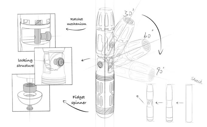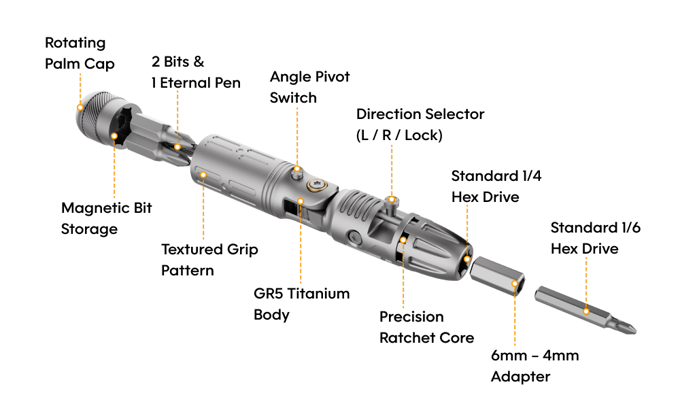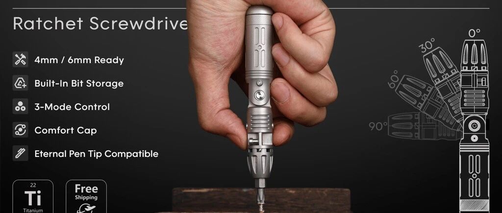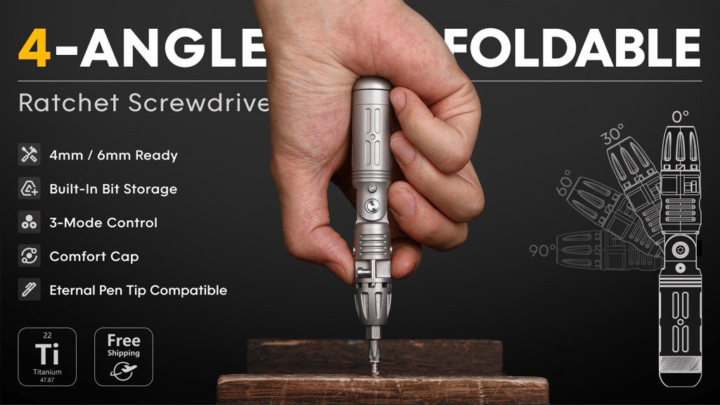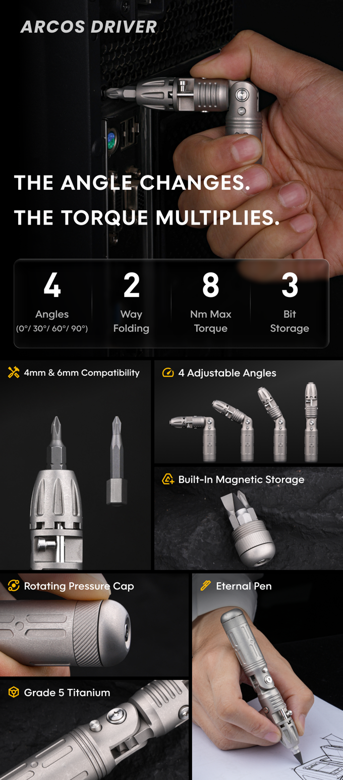Arcos Driver,一款四角度可折叠钛合金棘轮螺丝刀,用一个工具驱动所有螺丝,随处书写。