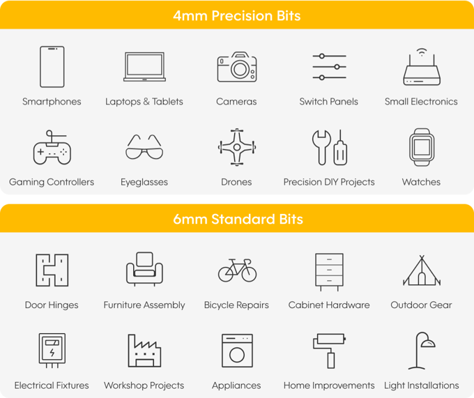Arcos Driver 的磁性头部兼容 4 毫米精密批头和标准 6 毫米批头,这意味着它可兼容数千种现有批头类型。