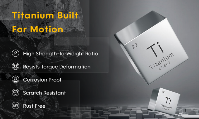 Arcos Driver 的钛合金机身可承受反复扭转的压力而不弯曲。它能抵抗锈蚀、汗水和户外暴露,并能抵御日常碰撞和刮擦。