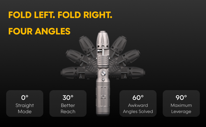 - 多角度折叠,应对真实场景。轻松触及狭窄空间,无需扭曲手腕。