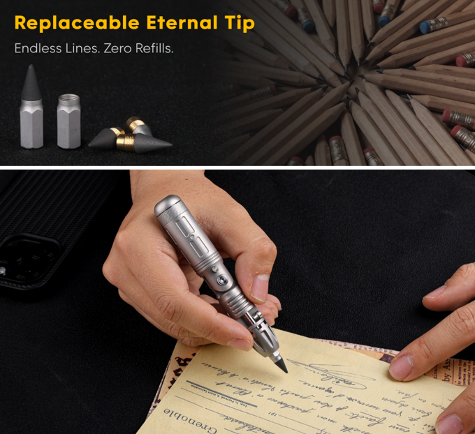 隐藏在磁性收纳仓内的可更换笔尖,专为日常记录和标记而设计。
