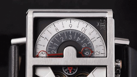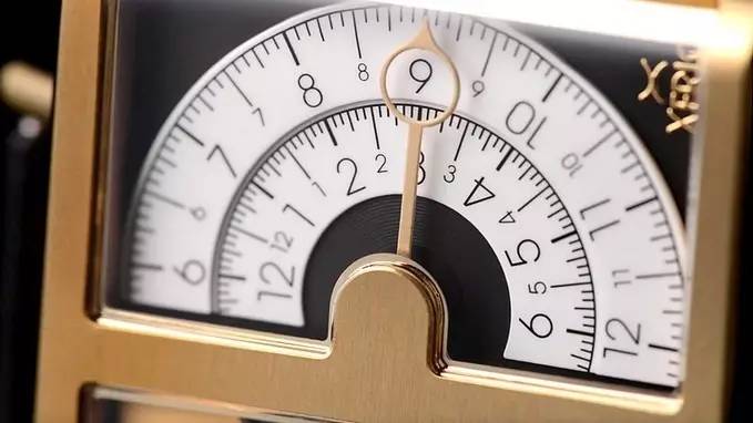 Xeriscope 中上方为分钟表盘,近半圆,表盘数字间有刻度凹痕。