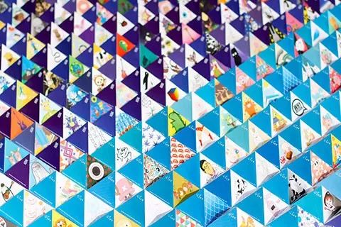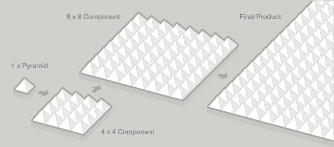将一个个 4*4 的金字塔块,拼成 8*8,12*12 ,再拼成大幅艺术作品。