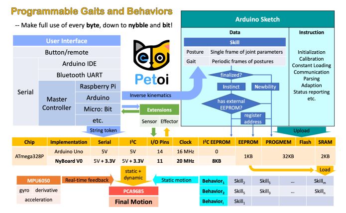 Nybble 的运动由兼容 Arduino 的微控制器驱动,存储猫咪本能「肌肉记忆」进行行动。