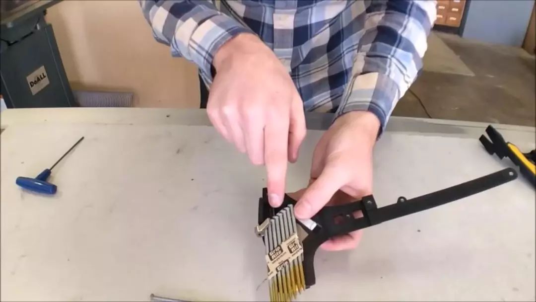 手枪一样,装弹填补钉排。