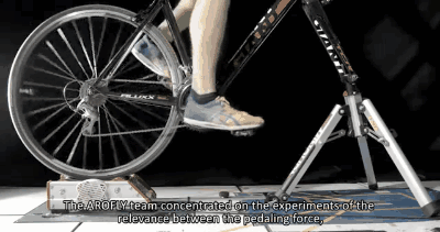团队在实验室进行踩踏力量、地面反作用力与胎压变化的实验,发现三者间有相似的趋势。