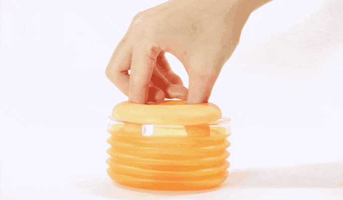 Monchi 的可压缩碗可以让你轻松地够到底部的食物。