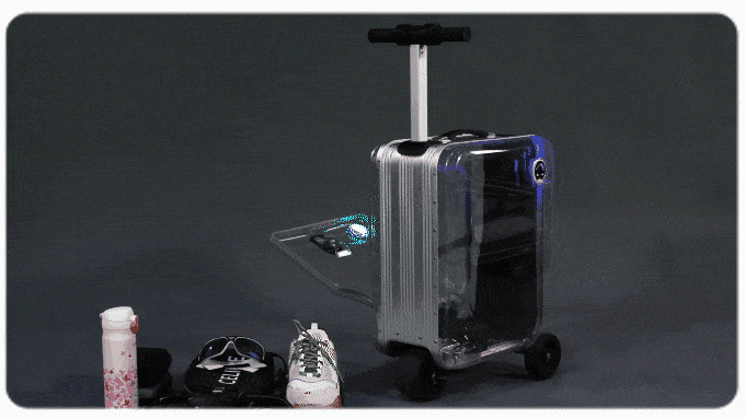 Airwheel行李箱有两个外部USB端口,因此可以在旅行时为设备充电。电池可用作便携式移动电源。