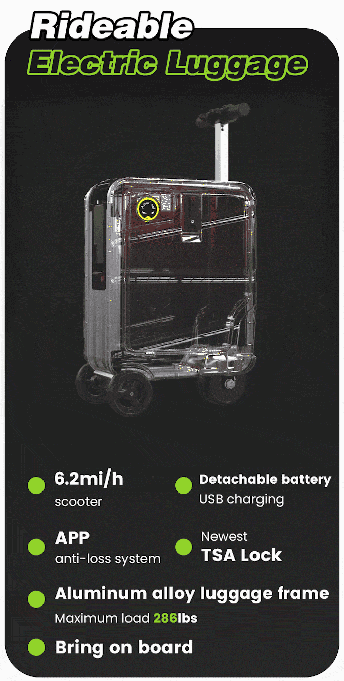 告别沉重的行李箱。长途跋涉到酒店或航站楼之间不再是问题,只需拿起行李并骑行即可。