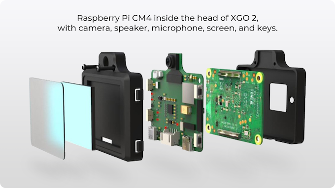 XGO 2由Raspberry Pi Compute Module 4(CM4)提供支持,该模块拥有运行在72.1GHz的四核Cortex-A5 CPU。它提供双频 2.4GHz/5GHz Wi-Fi 和蓝牙 5.0 BLE 的无线连接。XGO 2具有4GB / 32GB的RAM用于多任务处理和2GB的Micro SD卡存储用于操作系统,拥有快速的启动时间和流畅的整体用户体验。