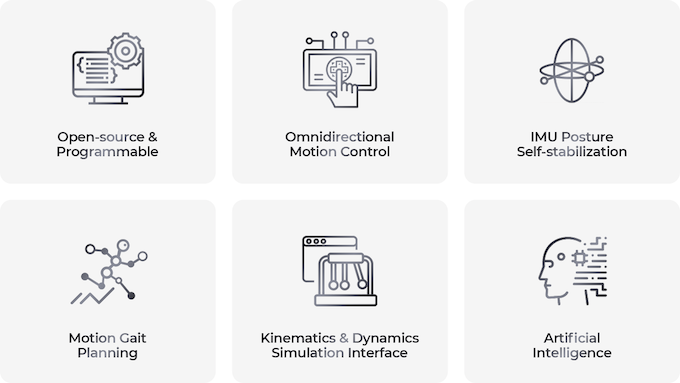 当它的脚静止时,整个身体保持六度的运动控制自由度,为所有本能和复杂的运动提供前所未有的移动和协调。