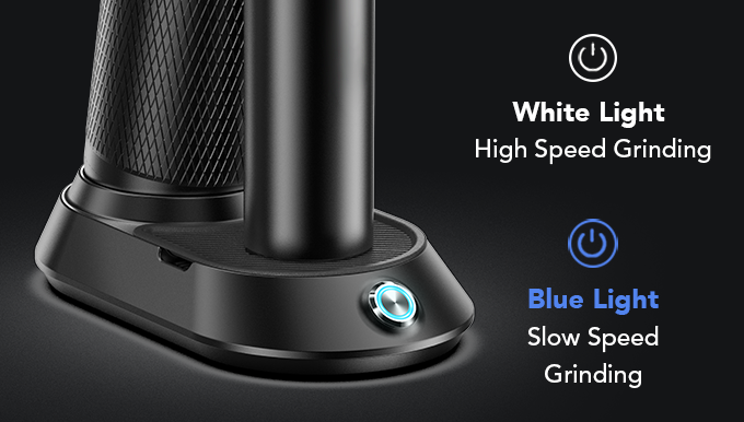 HiBREW G5磨床具有慢磨和高磨削两种磨削速度,内置180W直流电机,可实现慢速和高速换档。你可以为不同烘焙水平的咖啡豆选择不同的研磨速度,提高咖啡豆研磨的细度和效率,获得更好的咖啡粉。使用时,只需一个按钮即可切换研磨速度,非常方便。