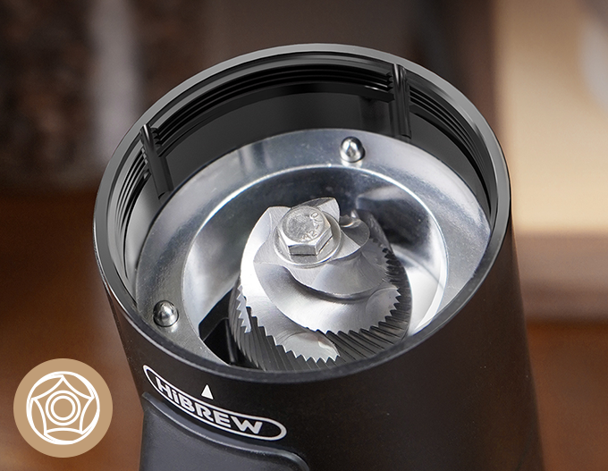 HiBREW G5的创新结构设计具有15°和90°研磨角度,确保粉末流动顺畅彻底。