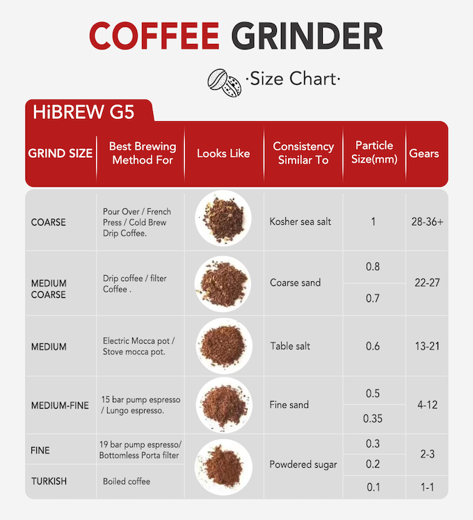 这款咖啡研磨机具有 36 种研磨设置,提供了一系列惊人的可能性。你可以根据个人喜好设置研磨水平,从而为每杯咖啡提供近乎完美的味道。如果你想享用一杯风味非凡的顶级咖啡,HiBREW G5是你的理想选择。