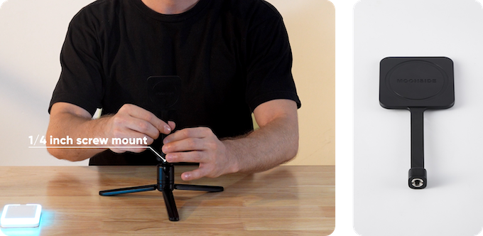 MagPod采用多功能的1/4英寸螺纹座,使你可以轻松将其连接到任何三脚架或其他兼容的相机配件上。此外,它还配有冷靴适配器,使你可以将MagPod与魔光灯一起安装在专业相机上,为你提供更多创意摄影选项。