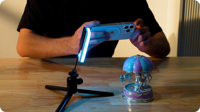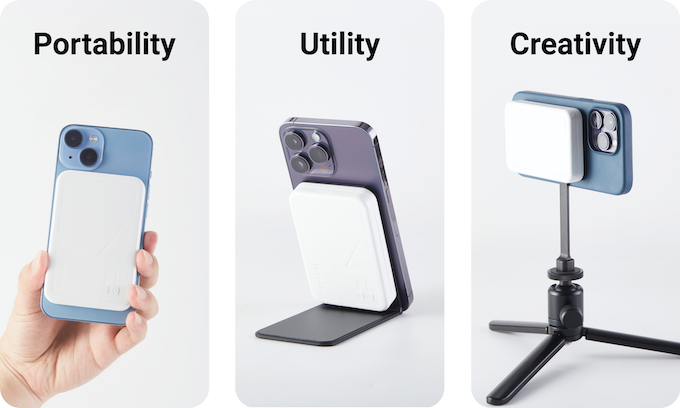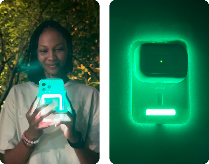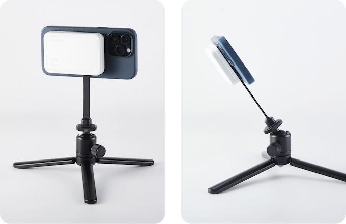 MagFlip在每个翻转上都具有双面MagSafe兼容性。你只需将其轻松地吸附在手机背面,就能将你的魔光灯照向任何方向。