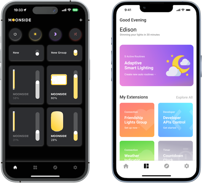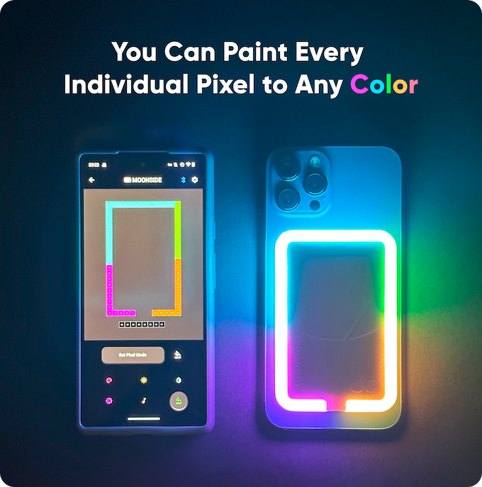 Moonside的应用程序允许你单独控制每个LED灯,调节整体亮度,并从1600万种颜色中选择,或从应用程序提供的不同主题和图案中选择。
