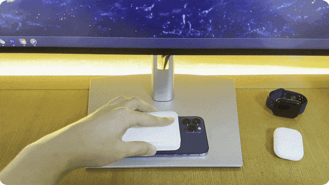 配备强大的N52钕磁铁,MagLight可轻松安装在你的MagSafe iPhone背面(或任何具有磁性环的手机上),并立即开始无线充电。