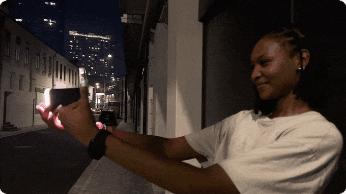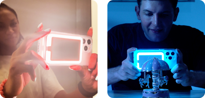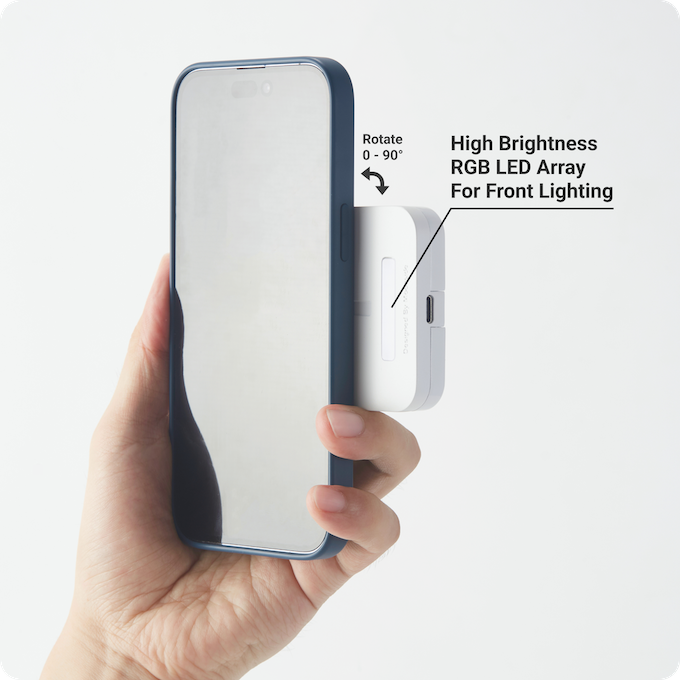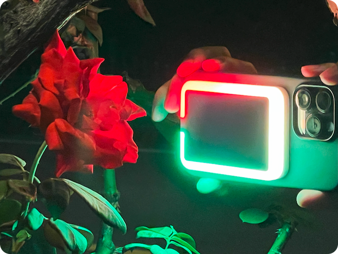 一个主要的环形灯面向外部,提升了从手机主摄拍摄的照片质量,但是将MagLight旋转90°,内部的小型LED灯带面向你,让你能够拍摄到明亮的自拍照。