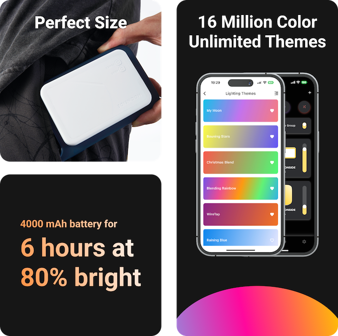 通过Moonside应用程序,你可以选择各种预设的动画照明效果。此外,你还可以自定义照明效果以满足你的特定需求。MagLight的定制可能性是无限的。