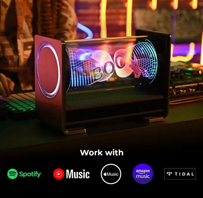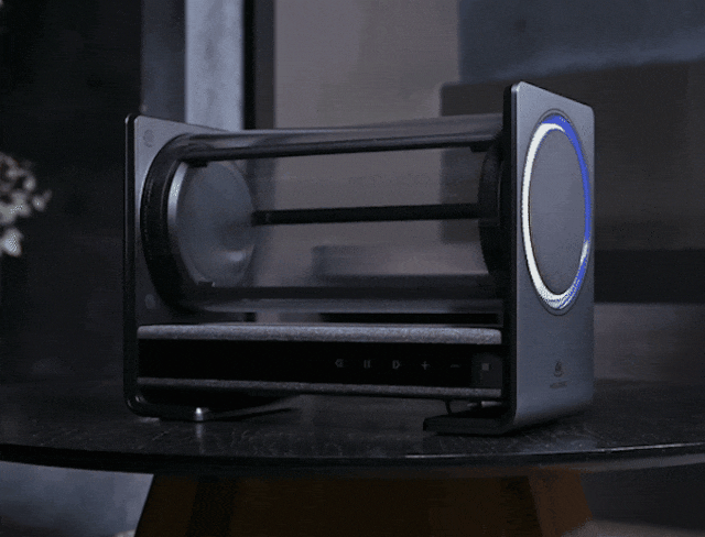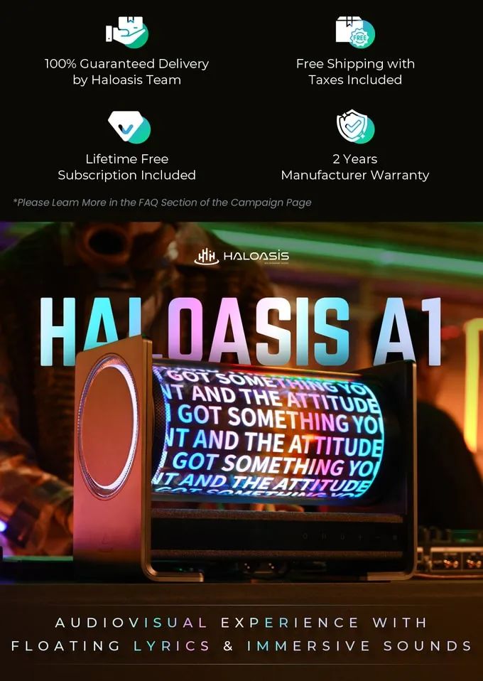Haloasis A1 是一款全息歌词无线音箱,动态地将音频和歌词可视化,与蓝牙播放实现无缝同步,带来前所未有的音乐乐趣。