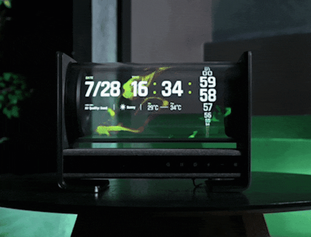 Haloasis A1配备了艺术屏保功能,当不播放音乐时显示漂浮的视觉效果,成为空间的焦点。用户可以选择各种动态艺术效果,以及时间、天气和其他信息的全息显示。主题风格和歌词风格将不断更新,用户将获得新的模板。