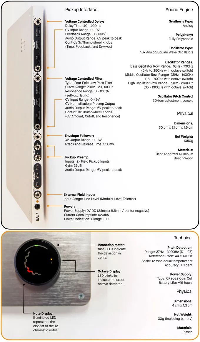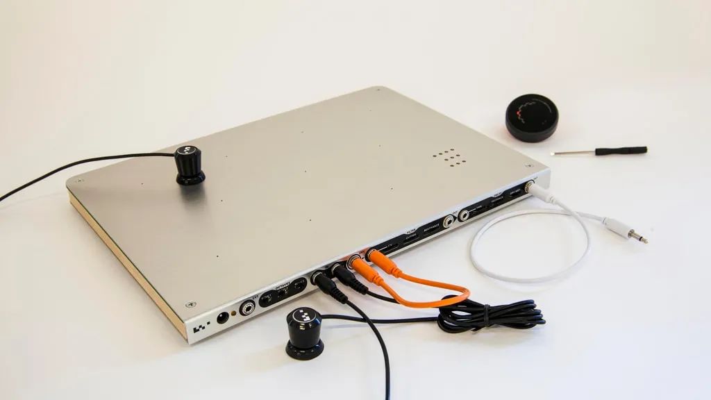 这款乐器不断从其表面发出一云电磁场,等待音乐家的检测。这些场由精心雕刻的平面铜螺旋以同构布局发出。通过在表面上移动两个电磁拾音器,你可以解锁一个声音的宇宙——从空灵的 drones 到生动的旋律、古怪的低音线以及失真的噪声。