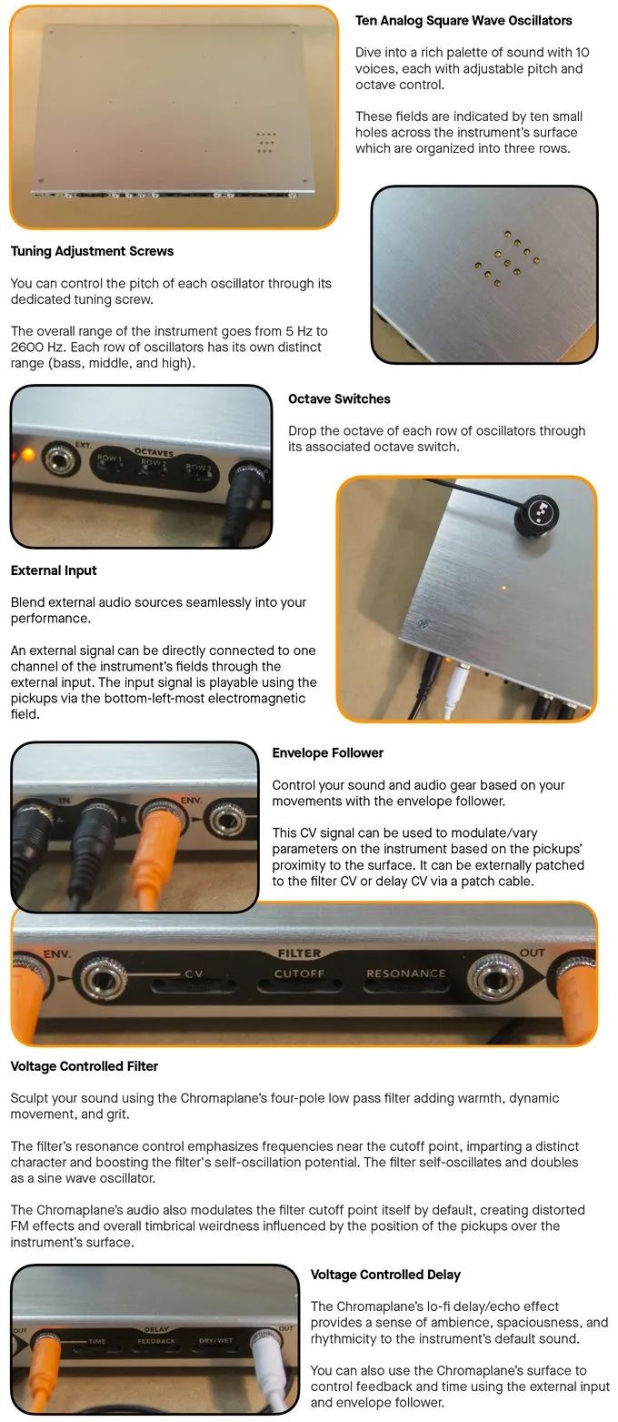 Chromaplane 是一款独特的合成器,具备十个可调电磁场,通过拾音器演奏。