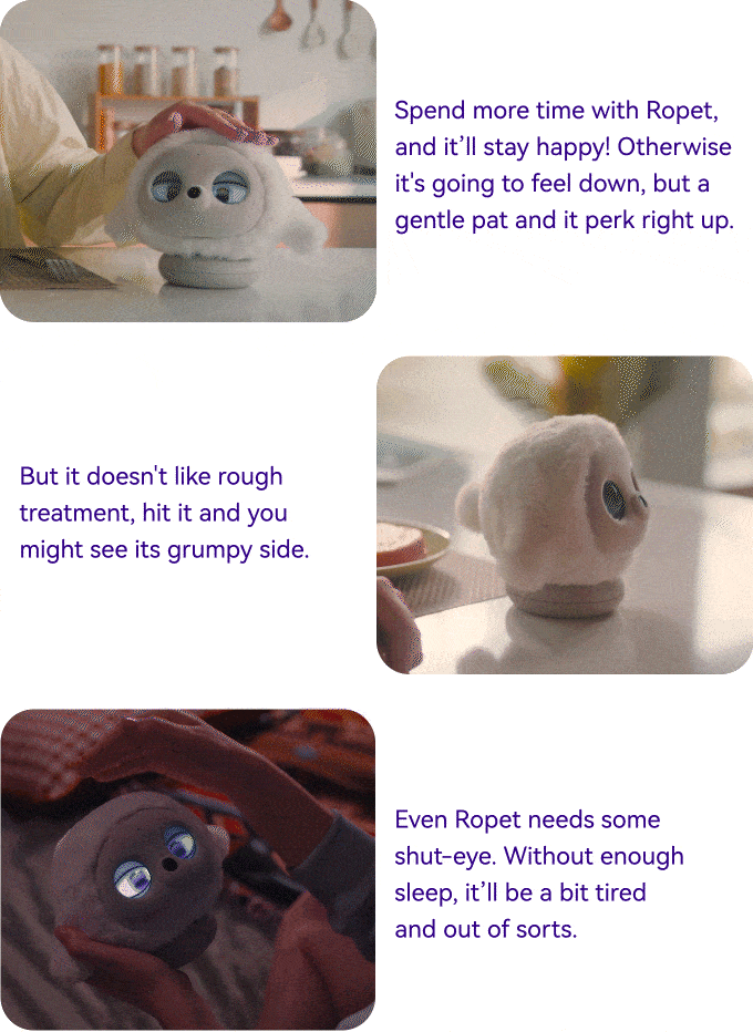 Ropet有自己的情绪,而这些情绪取决于你的陪伴。