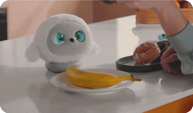 除了你的动作、情感和人,Ropet还可以识别数十种物体和食物。每个被识别的物品或食物都会在它那双大而生动的眼睛中显现出来。