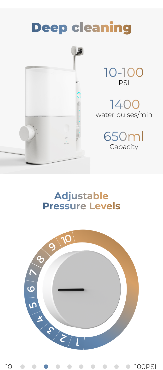 每分钟提供高达1400次水脉冲,进行有效的深层清洁,让口腔感觉清新。
