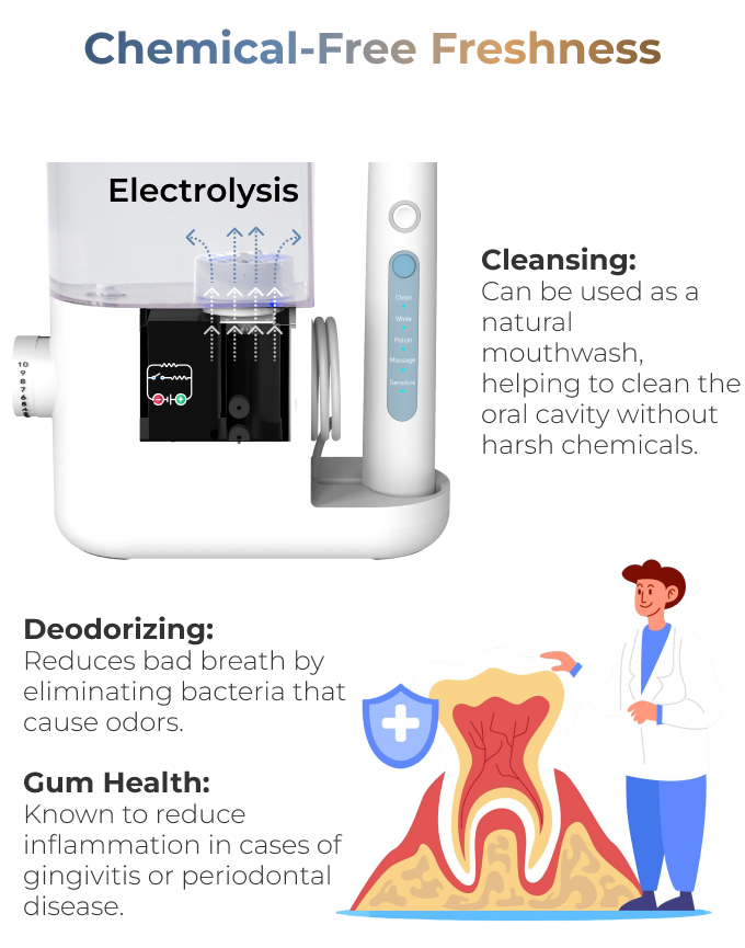 Unifloss提供了一种天然且无化学成分的解决方案,采用臭氧水技术。与传统漱口水不同,臭氧水能够深层清洁,同时保持口腔微生物群的平衡。它避免了干燥、刺激或过度破坏细菌的风险,为日常口腔护理提供了一种更温和且有效的替代方案。
