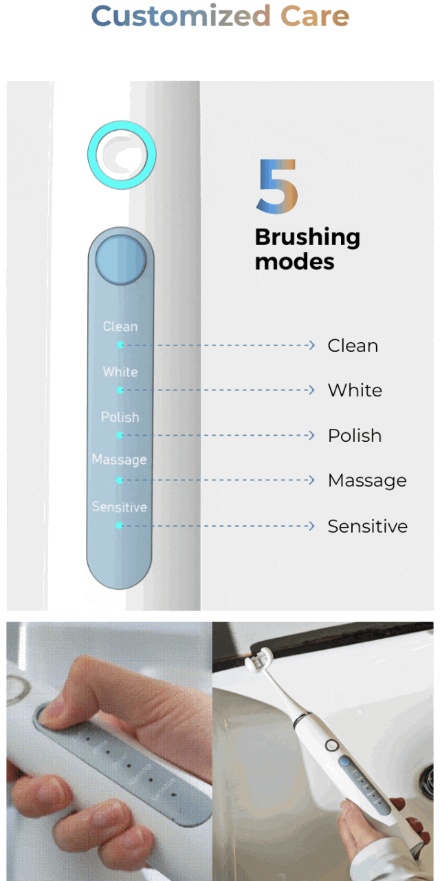 提供5种刷牙模式,以满足不同需求,从强力清洁到敏感护理,为你量身定制的口腔护理体验。