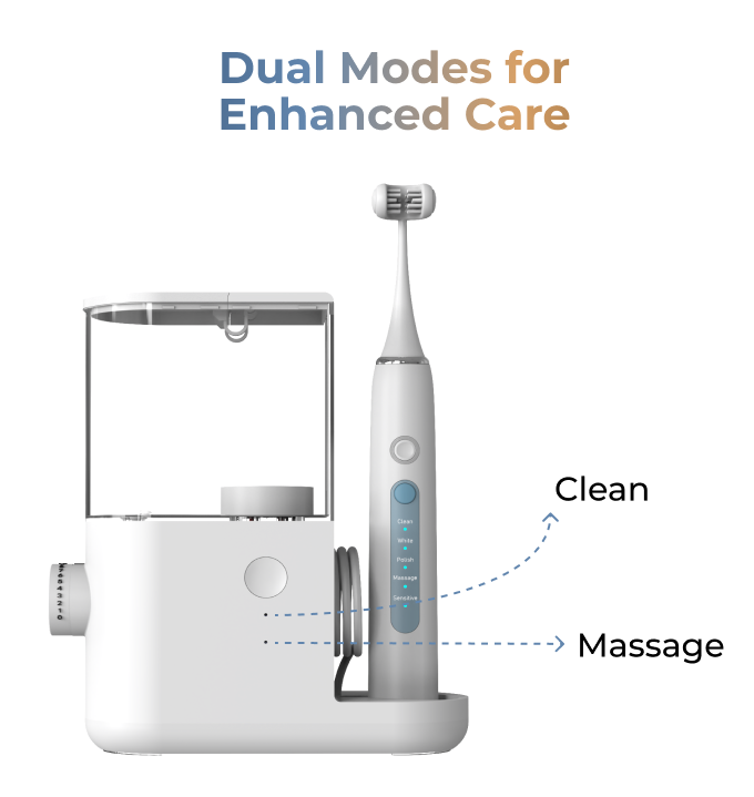 Unifloss的强大之处在于其将刷牙和牙线结合为一个无缝、高效的日常护理流程。借助三面刷头,你可以同时清洁每颗牙齿的前面、后面和顶部,同时利用水牙线功能针对牙齿间和牙龈线进行清洁。