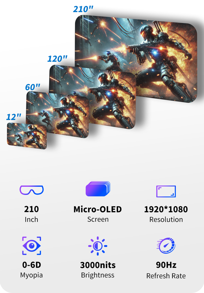 搭载独立的Android 11系统,直接访问Google Play,让你无需依赖外部设备即可享受流畅的游戏、高清流媒体和必要的生产力应用。其3000nits超亮度显示屏确保在明亮阳光下也能呈现清晰、鲜艳的视觉效果,而0-6D近视调节则无需配戴眼镜即可提供完美的清晰度。仅重75克,结合轻巧的人体工学设计,确保全天候无与伦比的舒适感。