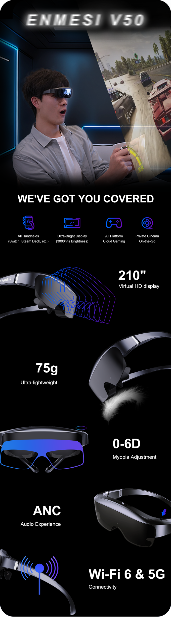 无论你是在探索电影冒险、主宰云游戏,还是在移动中提升生产力,ENMESI V50都为创新、风格和便利性设定了新的标准。