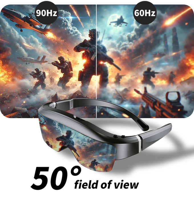 50°的广视场(FOV)让你更深入每一个瞬间,而60-90Hz的刷新率确保流畅的运动,无卡顿或延迟。无论你是在导航激烈的动作场景,还是在探索复杂的虚拟世界,每一帧都保持清晰、流畅和逼真。
