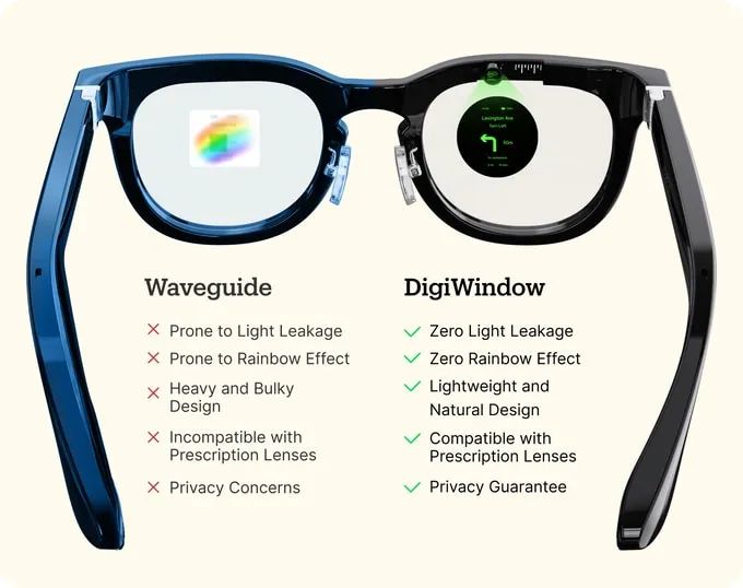 与传统的波导投影技术不同,DigiWindow直接将内容投射到你的视网膜上,即使在强烈阳光下也能提供清晰可见的效果。最重要的是,显示内容仅对你可见,确保完全的隐私。
