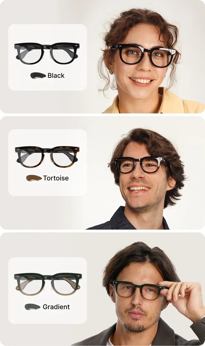 Halliday眼镜经过精心打磨,表面光滑,提供经典黑色、优雅的龟壳色和大胆的渐变色,适合每种个性。