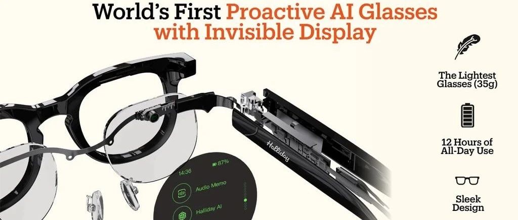 Halliday是一款独特的主动式AI眼镜,配备隐形显示屏。