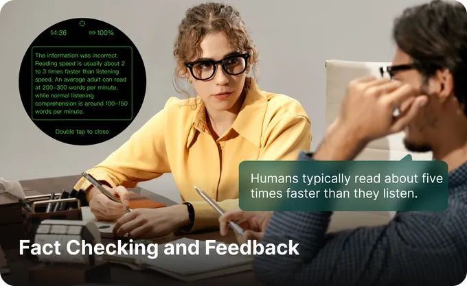 在会议或商务对话中遇到棘手问题或陌生领域时,Halliday眼镜能够无缝识别信息空白,并提供你所需的准确答案,助你出色表现。从复杂的谈判到即兴演示,主动AI始终支持你。