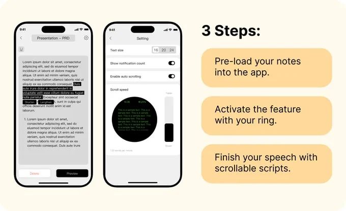 该备忘录功能非常适合演示、会议或面试,允许你提前将笔记加载到应用程序中,帮助你在使用环形或镜腿控制时保持冷静和自信。
