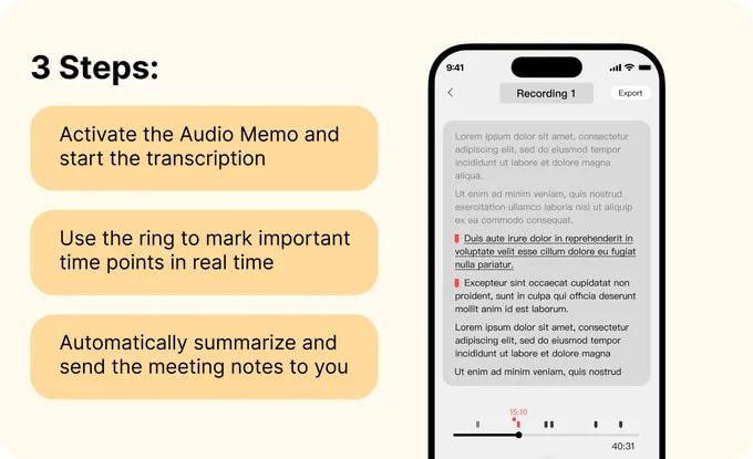 不再需要记笔记或试图回忆细节。Halliday眼镜在会议或对话结束后轻松创建总结,让你专注于讨论,眼镜为你处理细节。