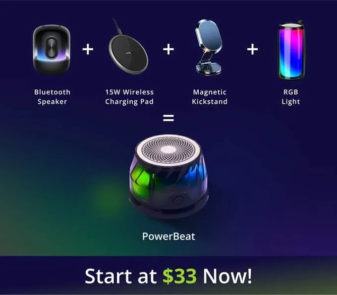 PowerBeat,一体化蓝牙音箱、磁吸无线充电器和手机支架,结合了卓越的音效表现、快速充电、尖端技术和精致设计。