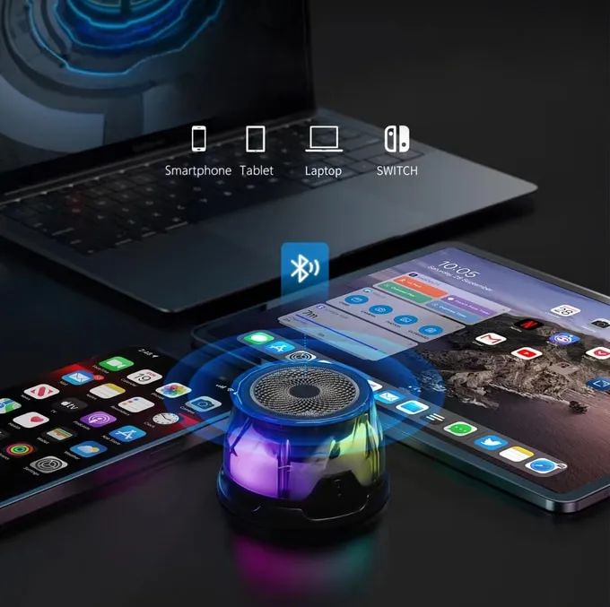 配备生动的RGB灯光,这款音箱不仅提供出色的音质,还为你的听觉体验增添了有趣的视觉元素。
