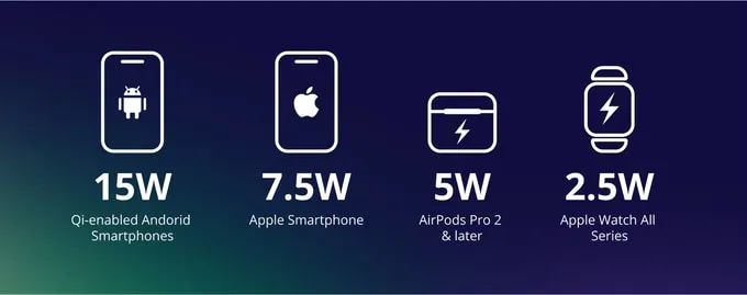 除了作为便携式蓝牙音箱,PowerBeat在底部集成了无线充电垫,为你的Qi兼容Android智能手机、iPhone、Apple Watch和AirPods提供快速、便捷且整洁的充电方式。