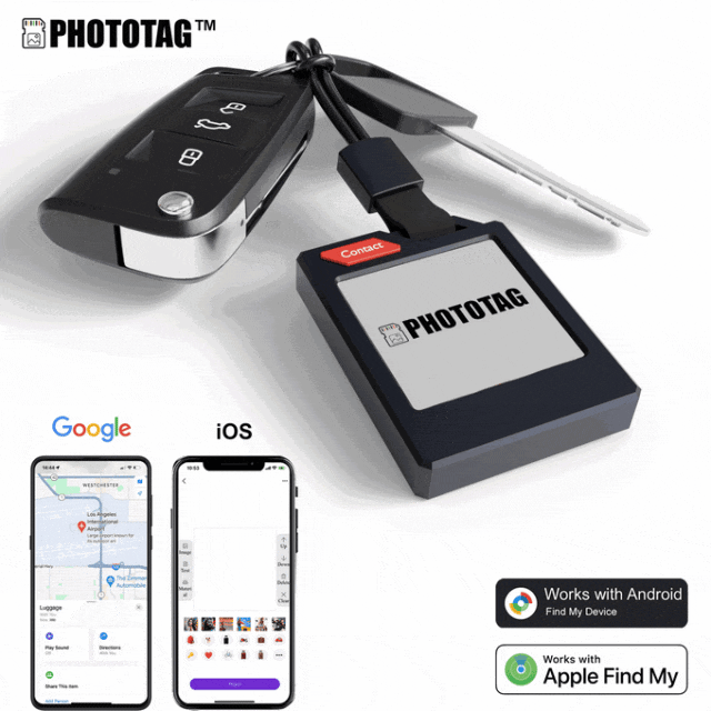 PhotoTag是一款电子墨水追踪器,即配备彩色电子墨水屏幕的蓝牙钥匙链追踪器,兼容Android和iOS设备。