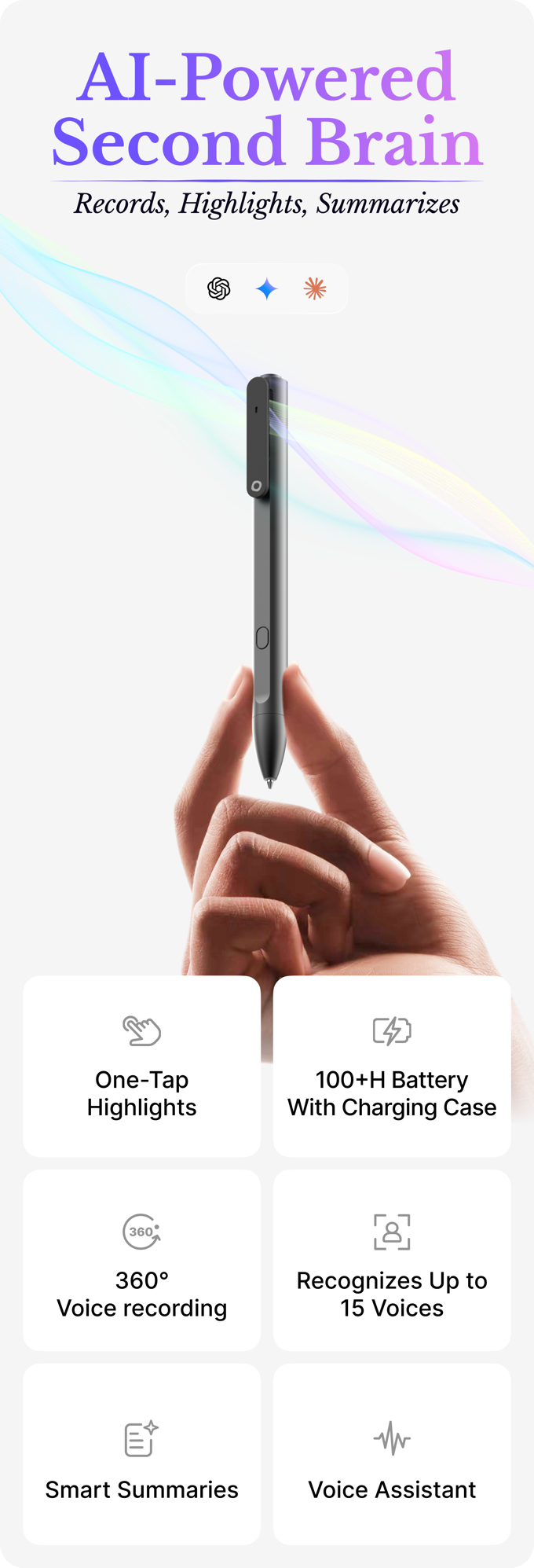 而且——它也是一支真正的笔。你可以边写边让Flowtica Scribe在后台录音和生成摘要。