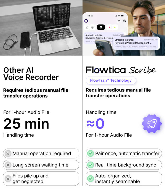 Flowtica Scribe 能提供准确的转录和智能、语境感知的摘要,真正反映关键信息。