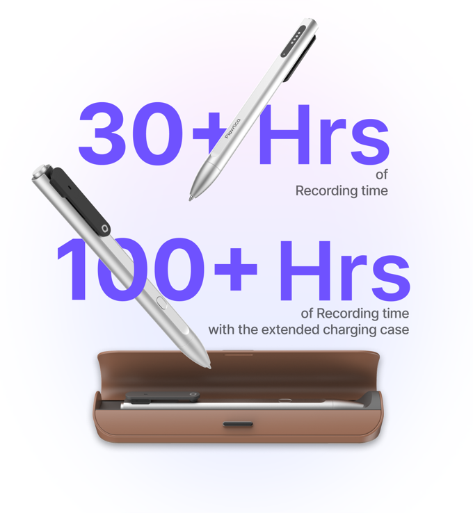 单次充电可连续录音长达30小时,配合便携充电盒,总续航超过100小时。